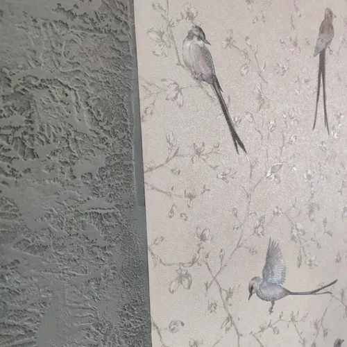 Дополняю отзыв . Ещё не доклеили. Очень нравятся в качестве акцентной стены на кухне,сочетаются с серым, серо- голубым, синим, бирюзовым оттенками. Холодными оттенками. Хотя, на первый взгляд, основной фон у обоев кажется бежево - серо-розовый. Зависит от освещения. Но я взяла за основу эти обои и к ним привязывала все остальные оттенки стен. В птичках несколько оттенков,и все они будут хороши в компаньонах рядом.