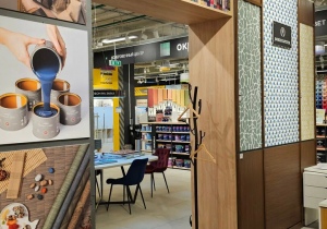 Помимо обоев там можно приобрести клей,плинтус, декоративные панели. Так же магазин предоставляет услуги по колеровке.