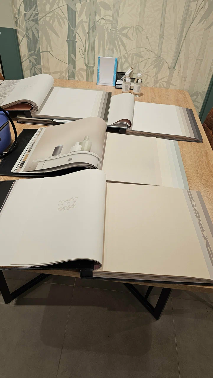 Удобные большие столы и стулья ,чтобы листать каталоги с комфортом.