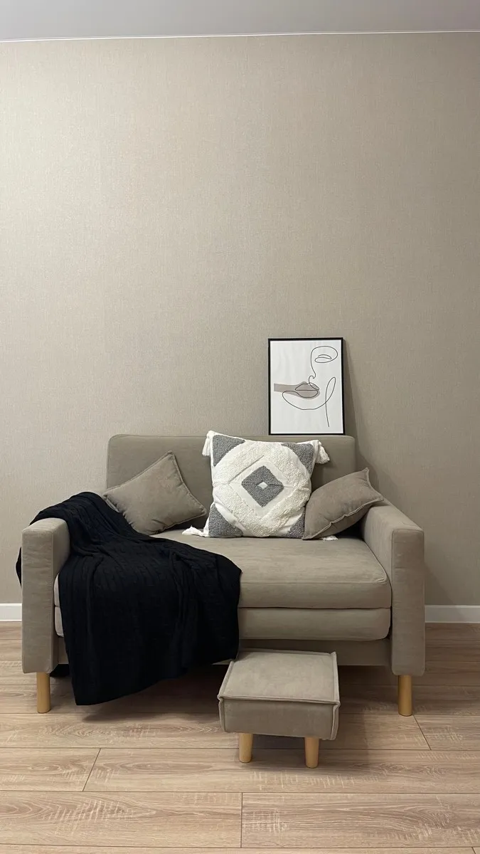 Ой, отзыв будет большой, обстоятельный. 1. Фактура - кайф. Я фанатка однотонных обоев под ткань, тут полный мэтч. На ощупь очень приятные, не как тканевые конечно, но очень классные. 2. Цвет - тут сложно. По факту темнее чем в карточке и на фото в некоторых отзывах. Я бы сказала что они больше коричнево-серые, чем мокко. У меня солнечная квартира и возможно это и спасает, что не выглядят сильно темными. А так я думала что будут посветлее на пару тонов, поначалу расстроилась, казались очень темными без потолков и плинтуса, но в итоге смотрится хорошо. 3. Плотность - хорошие плотные обои в своей цене. Кто говорит что тонкие, вы видимо тонкие обои не клеили и не видели. Я сама клеила обои за стояком батареи (в первый раз при чем клеила вообще), смяла полосу, потому как иначе за трубу не завести, разгладила шпателем и как будто ничего не было. Ни запинки, ни морщинки. К тому же обои перекрыли черноту стен, фото прилагаю. А еще они моющиеся, тоже фото прилагаю. С тонкими такие фокусы не пройдут. 4. Легкость в поклейке - я готовила стены сама, шпаклевала финишной, шкурила, грунтовала под обои и использовала клей метилан для флизелиновых обоев, наносила только на стену, клеятся нормально. Как новичку пришлось повозиться, но я и первый раз таким занималась. 5. Швы - тут тоже сложно. Первая стена у меня была где окно, там швов не видно. Потом большая 5 метровая стена и швы видно))) потом я приловчилась и швов опять не видно, заводила стык в стык (не внахлест), прилаживала шпателем и все. Но опять же, я клеила первый раз такие обои на всю квартиру, если уж я криворукая справилась, то как не получается у мастеров я ума не приложу. А еще у меня заваленные стены, может еще из-за этого местами видно швы, при чем даже в одной полосе - сверху видно, снизу нет. Ну или руки кривые у меня. Фото общее и вблизи прилагаю, найдите швы) если искать-выискивать, то конечно швы будет видно, но так на любых обоях. И если ваши гости ходят с лупой по квартире в поисках шва, то таким гостям место в гостинице, ящитаю. 6. Продавец - суперский. Осталось 2 целых нераспакованных рулона, сделала заявку на возврат и всё приняли, деньги вернули. Пришли обои в двух коробках (я заказывала 10 рулонов), каждый рулон в пленке, все одной партии, все целое. Немного были смяты по краям пара рулонов, но плотность обоев все исправила, на стене ВСЕ ОК. 100% закажу еще, знаю флипперов которые на десятках квартир клеили такие обои.