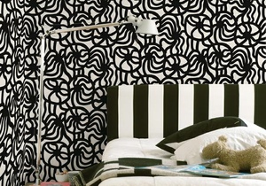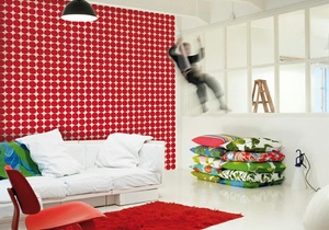 Marimekko — финская дизайн-студия, покоряющая мир броскими принтами с 1951 года. Широкую популярность марка получила, когда первая леди, Жаклин Кеннеди появилась на обложке спортивного журнала в их изящном розовом платьице. Под маркой Marimekko выпускаются наряды, предметы интерьера и посуда, заряжающая оптимизмом жителей малосолнечных северных стран и не только. Теперь яркие рисунки переместились на обои, которые печатаются на итальянской фабрике Sirpi.