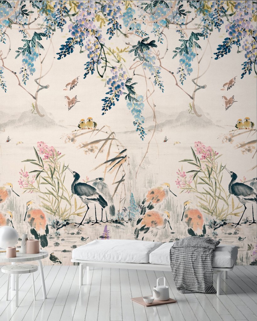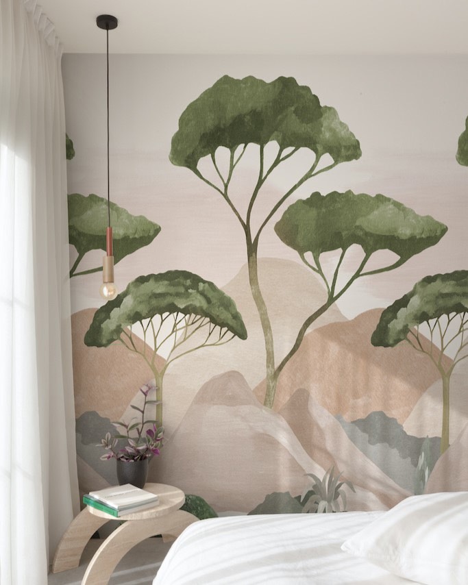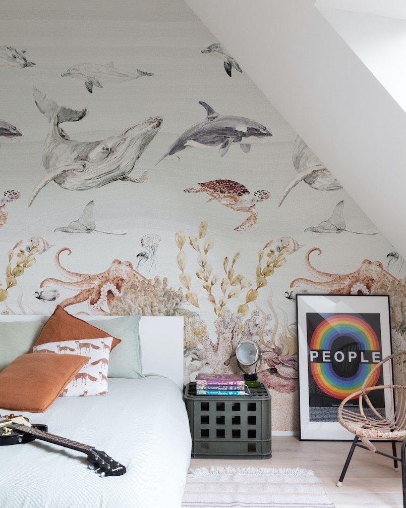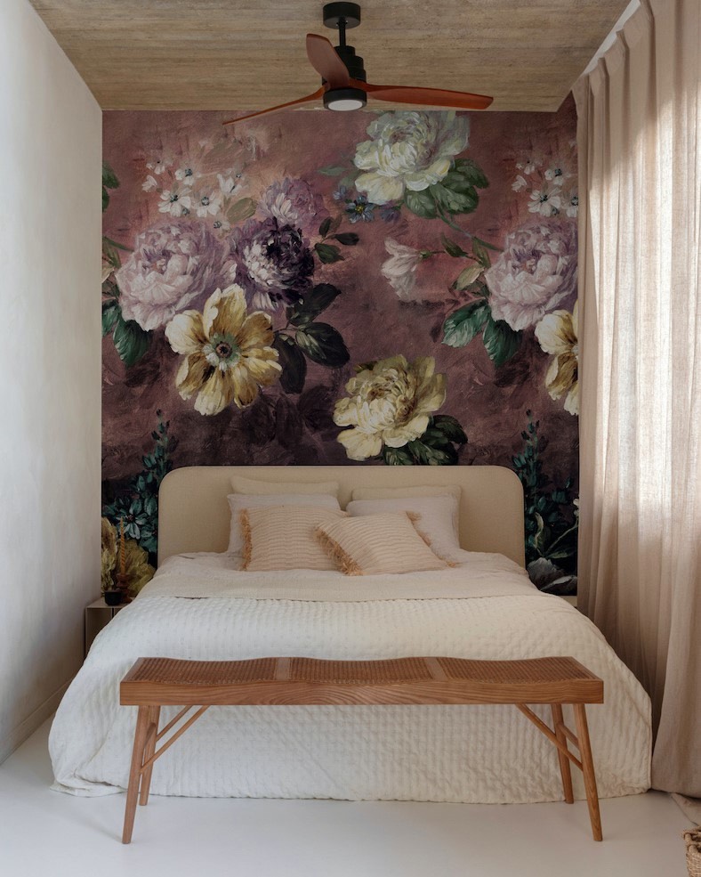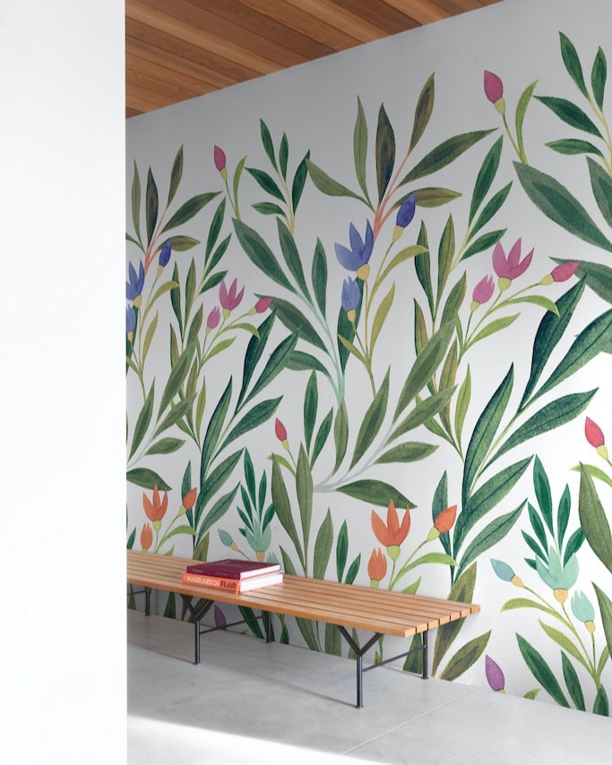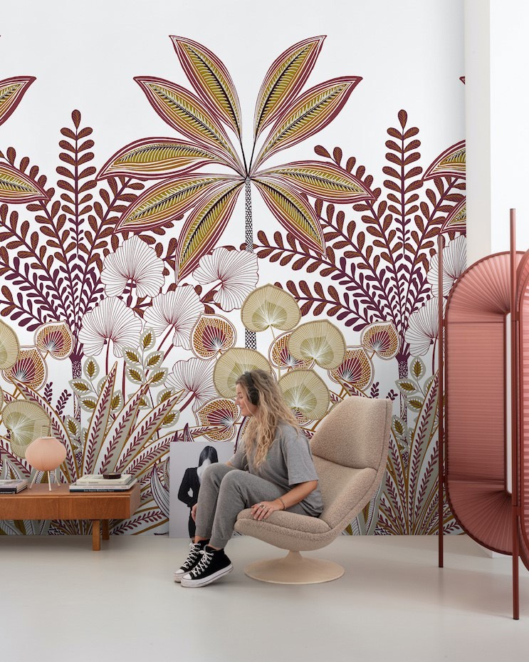 Orom 2 — коллекция от бельгийского бренда Grandeco, главными героями которой стали панно. Каждое изображение состоит из трех полос, общим размером 1.59×2.8 метра. В каталоге царит разнообразие растительности в самых разных исполнениях, принты для детских комнат и различные фактуры. А чтобы завершить интерьер, добавьте к панно однотонные обои из этой же коллекции.