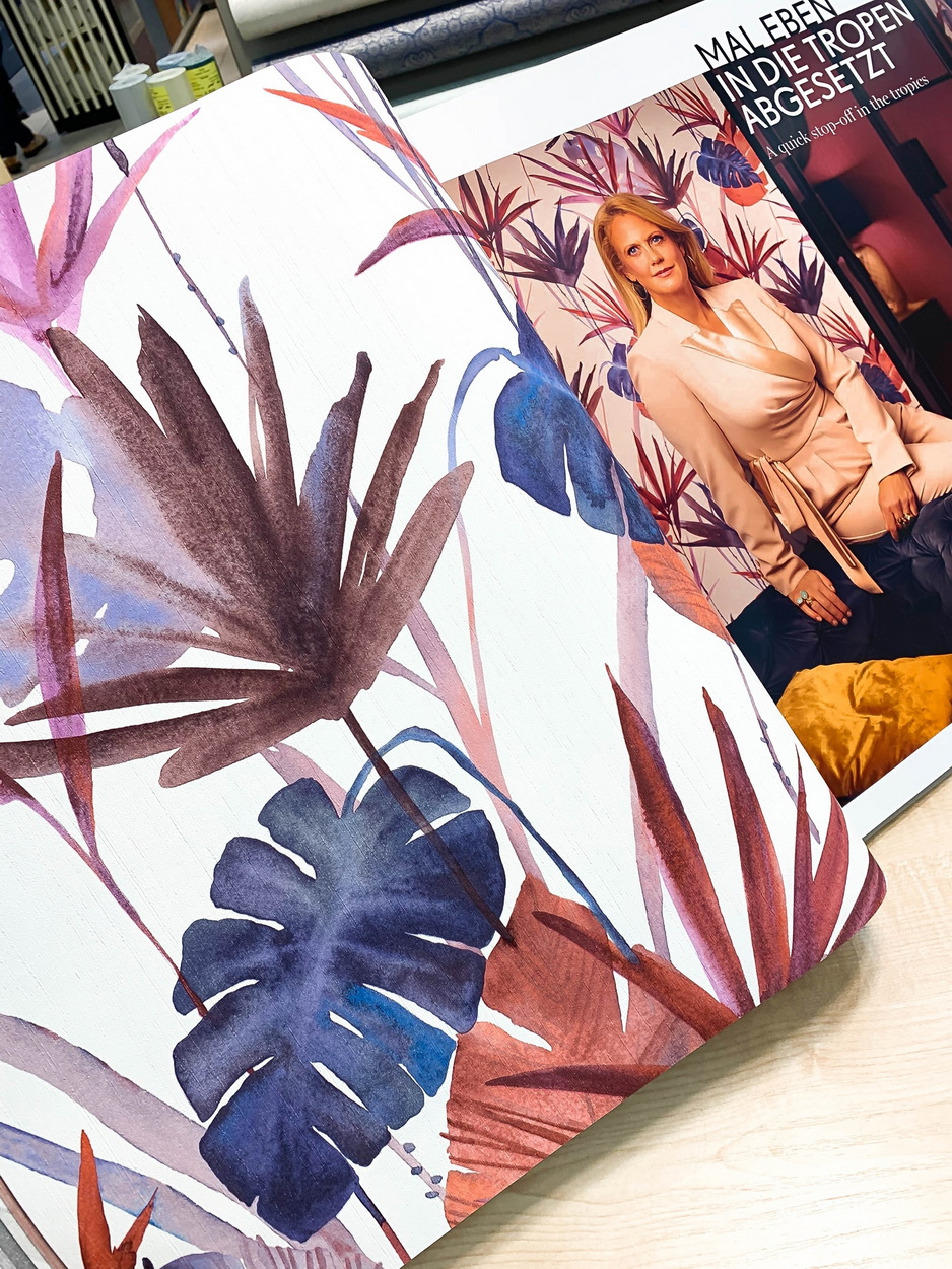 Фабрика Rasch выпустила уже вторую коллекцию обоев совместно с немецкой актрисой и певицей Барбарой Шёнебергер. Барбара — яркая и многогранная личность, любительница платьев с необычными принтами, и коллекция получилась в соответствии с ее вкусами и характером — трендовой и притягивающей внимание. Эксцентричный принт в виде потертого ковра, геометрия, акварельная растительность и сочные банановые листья — на наш взгляд, именно так выглядит коллекция потенциальных хитов!