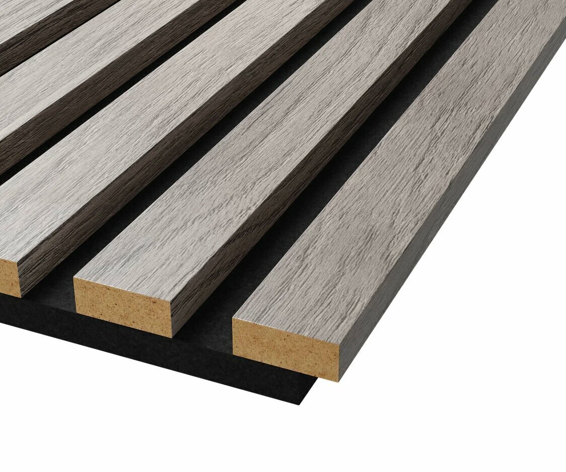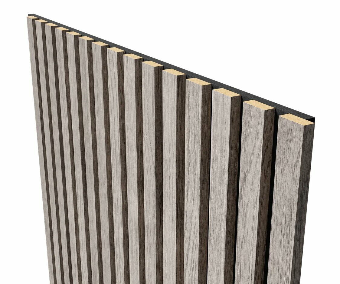 Cosca Акустическая панель, черный войлок, 1200х600х19мм, рейки МДФ дуб старинный светло-серый