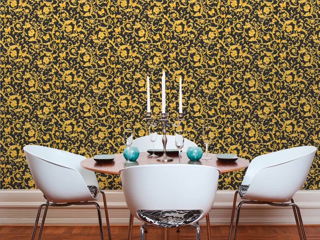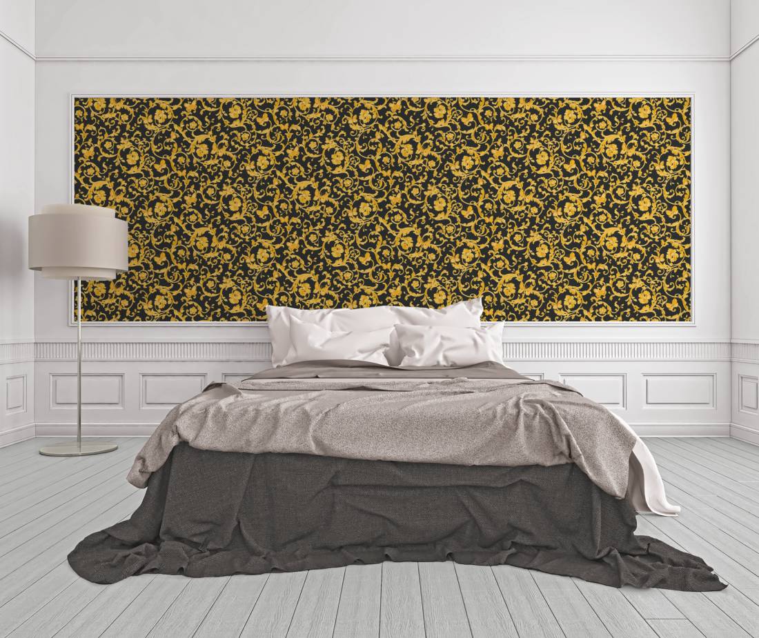 Великолепный набивной рисунок, много золота и дорогие материалы — это фирменный знак Versace, такой же, как и уже почти ставшие символом классики декоры Greek Key и Barocco.
