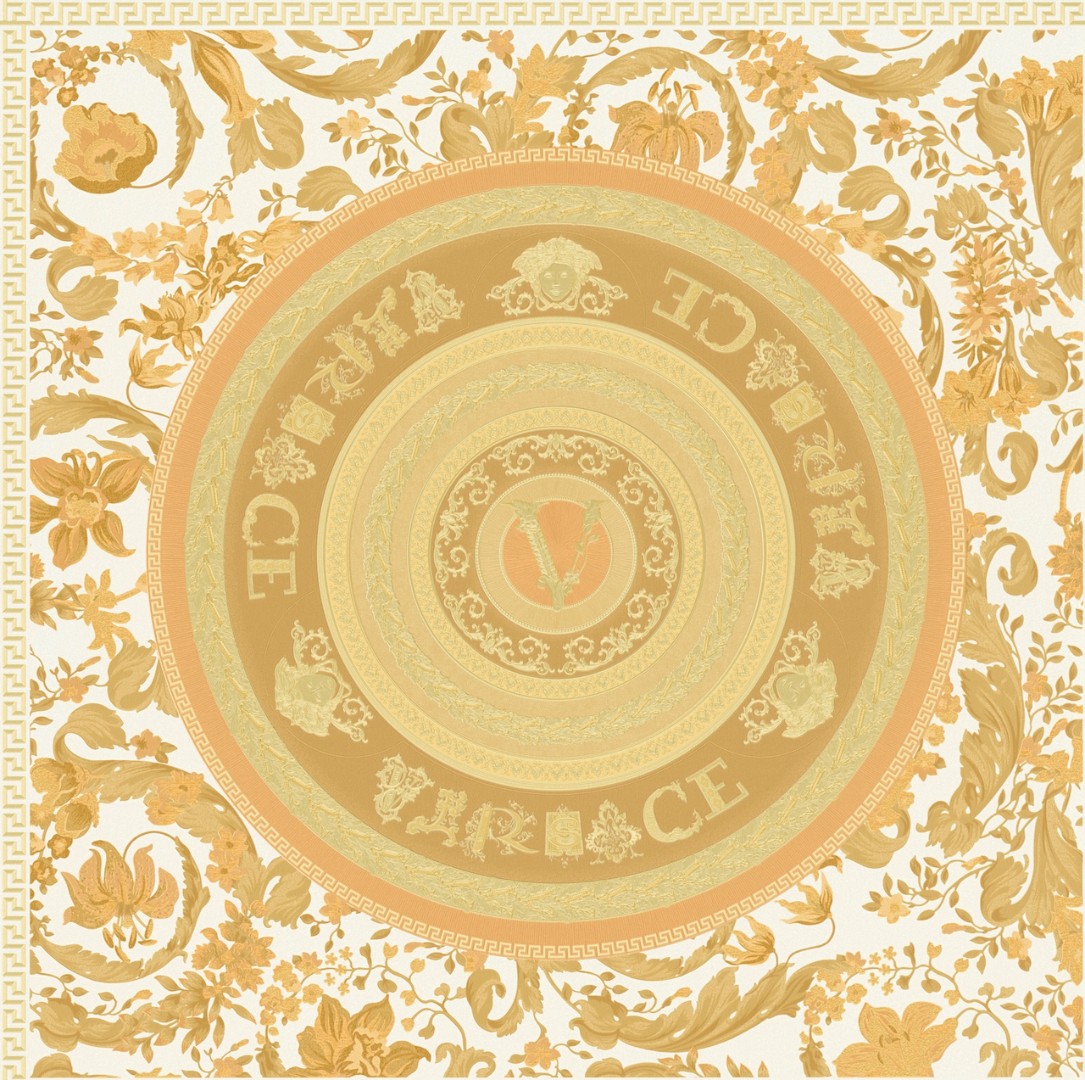 Великолепный набивной рисунок, много золота и дорогие материалы — это фирменный знак Versace, такой же, как и уже почти ставшие символом классики декоры Greek Key и Barocco.