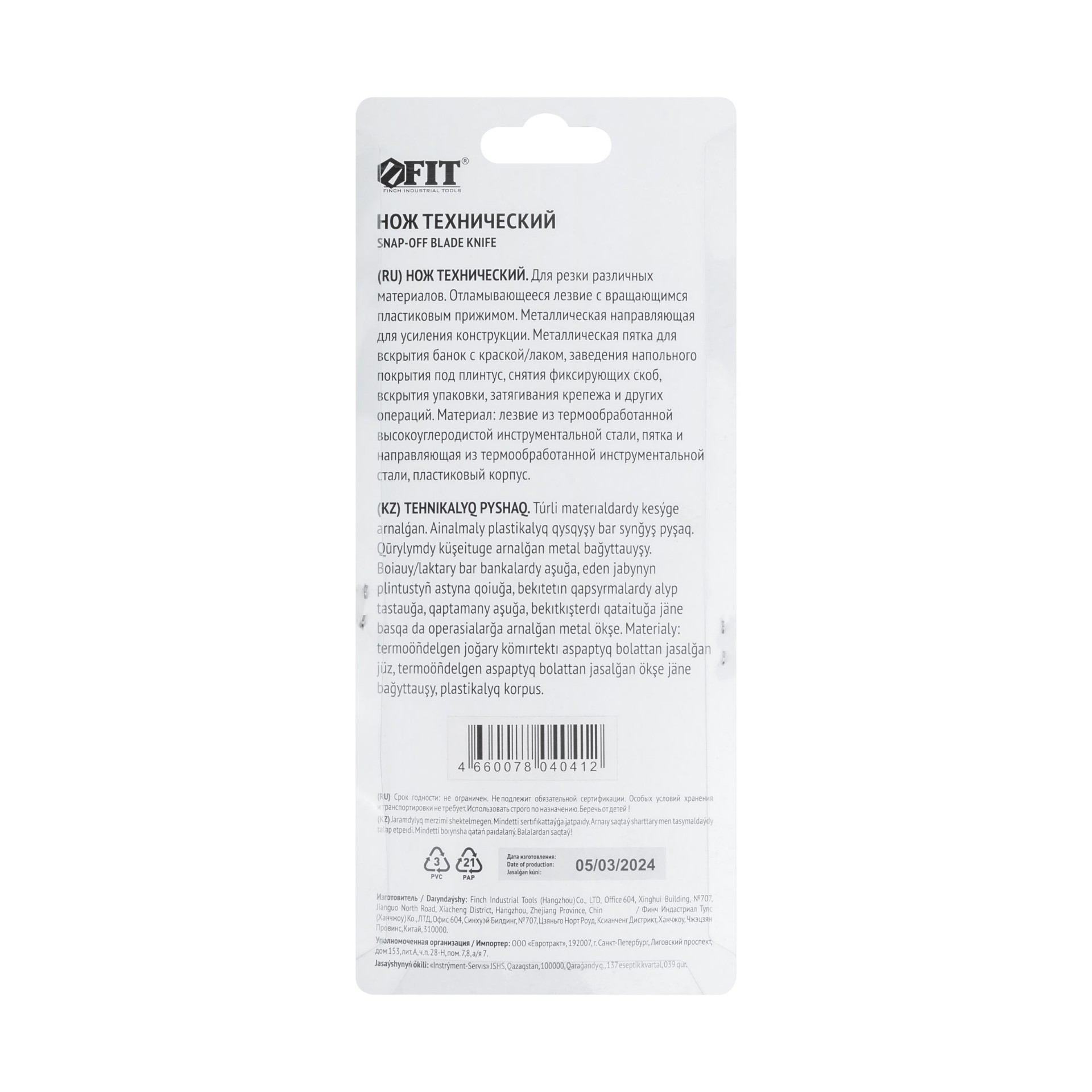 Нож Fit технический 18 мм усиленный, вращ.прижим, с пяткой
