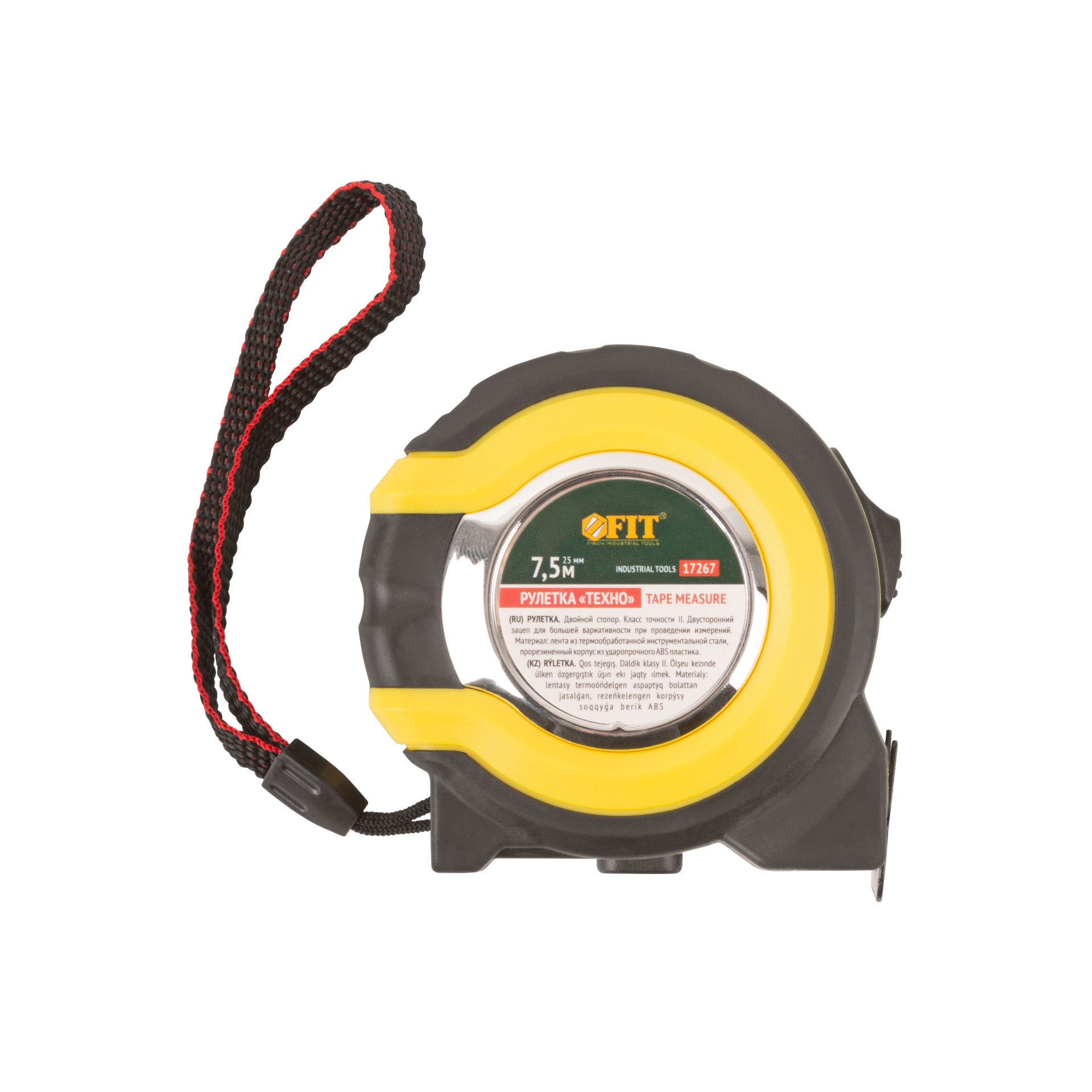 Рулетка Fit прорезиненный корпус, двойной стопор «Техно» 7.5 м x 25 мм