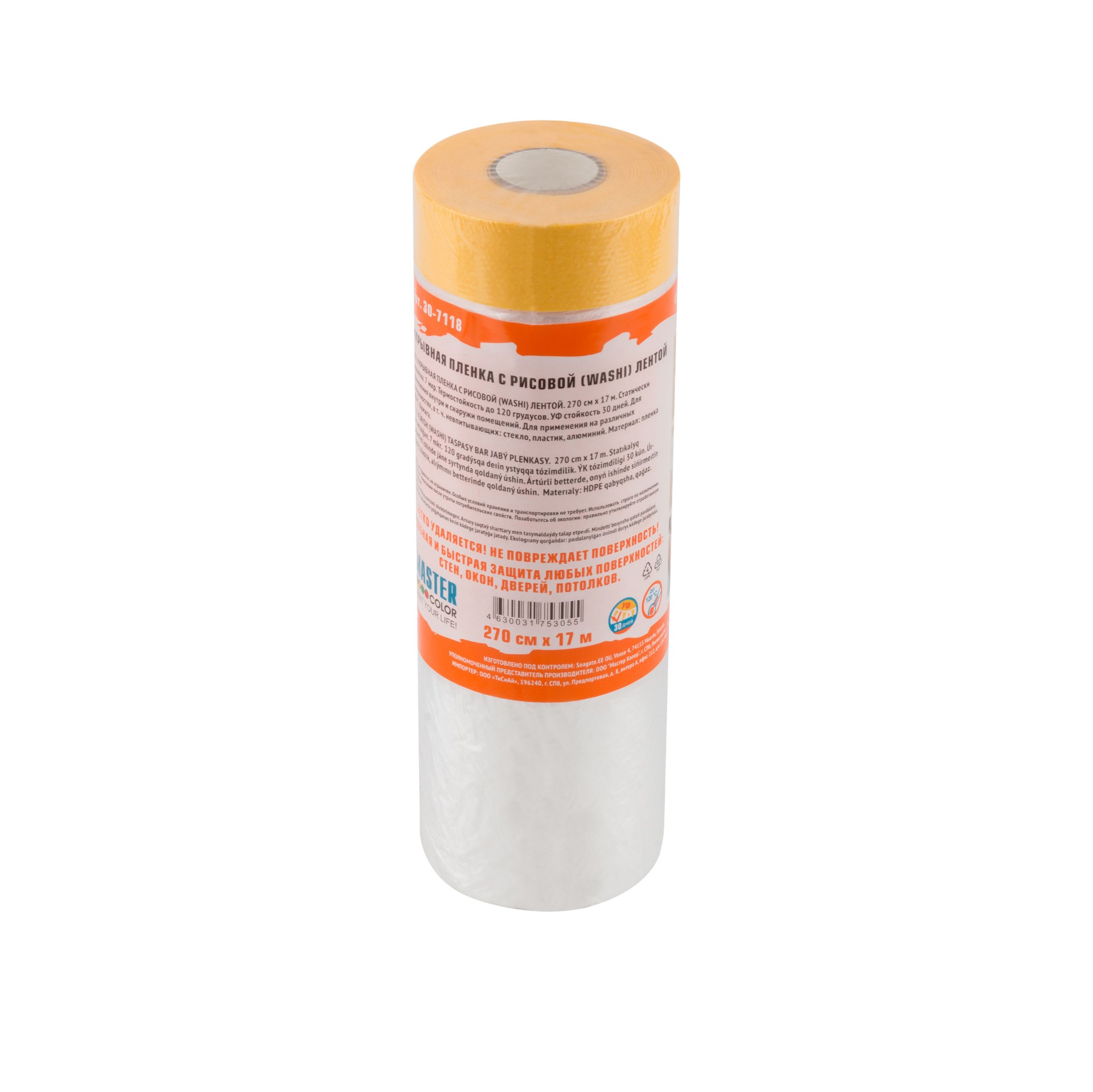 Укрывная пленка Master Color Clever Cover с золотистой малярной лентой, статически заряжена, 7 мкр.