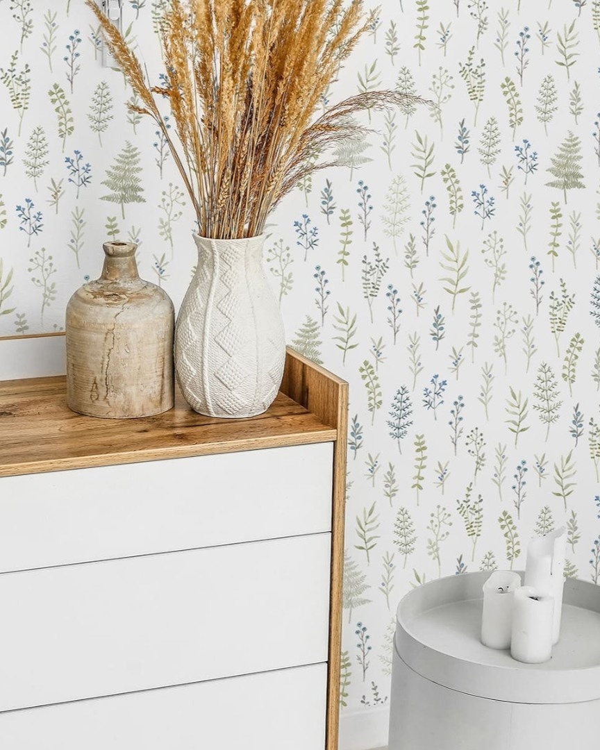 У нас очередная коллекция с растительными принтами в скандинавском стиле — Provance от Moda Interio! На светлых полотнах с приятной матовой фактурой расположились различные травинки, ягодки и листья папоротника. Такие обои — идеальная декорация для любого времени года, но только представьте, как приятно будет в подобном окружении жечь свечи, пить горячий какао и пересматривать любимые осенние фильмы.