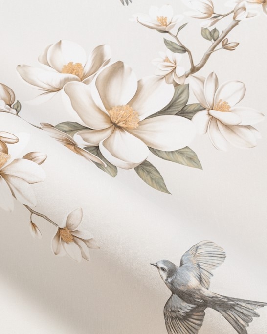 Magnolia — коллекция от бренда Palitra Life. Молочные лепестки магнолии и легкость птичьего полета наполнят комнату спокойным и радостным настроением. В наши обойные центры уже приехали пять универсальных оттенков вместе с компаньонами.