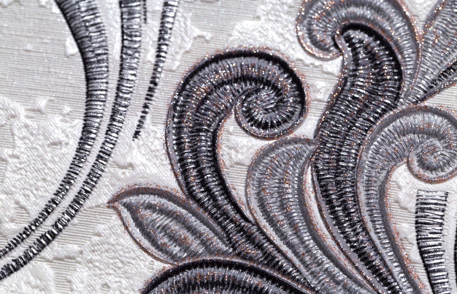 Palitra Prestige — пожалуй, самая изысканная и роскошная серия, выпускаемая на фабрике «Палитра». Тиснение полотен имитирует изящную старинную вышивку, в узорах ощущается веяние востока, присутствуют элементы ар-нуво.