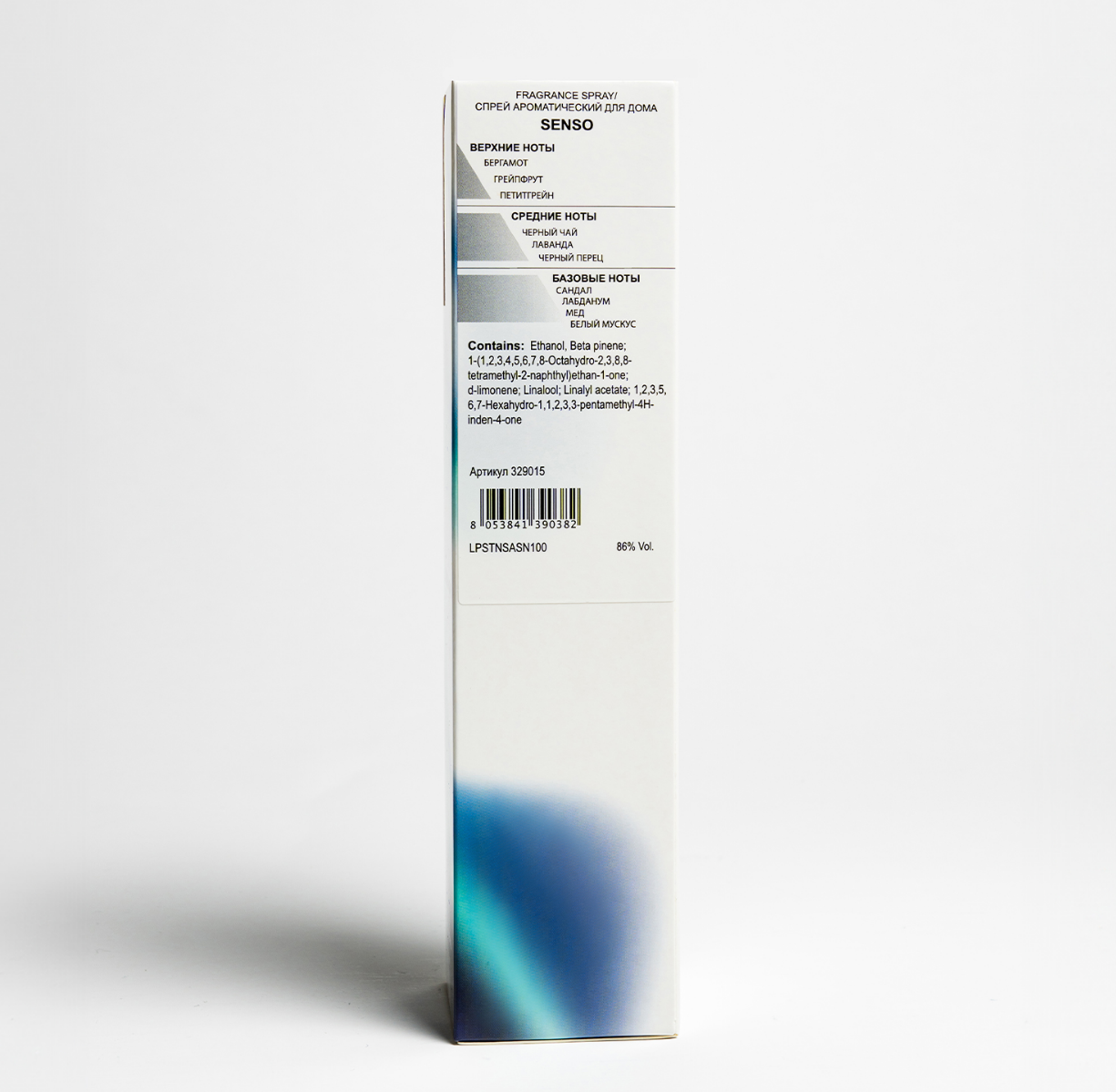 Средние ноты: Черный чай, лаванда, черный перец