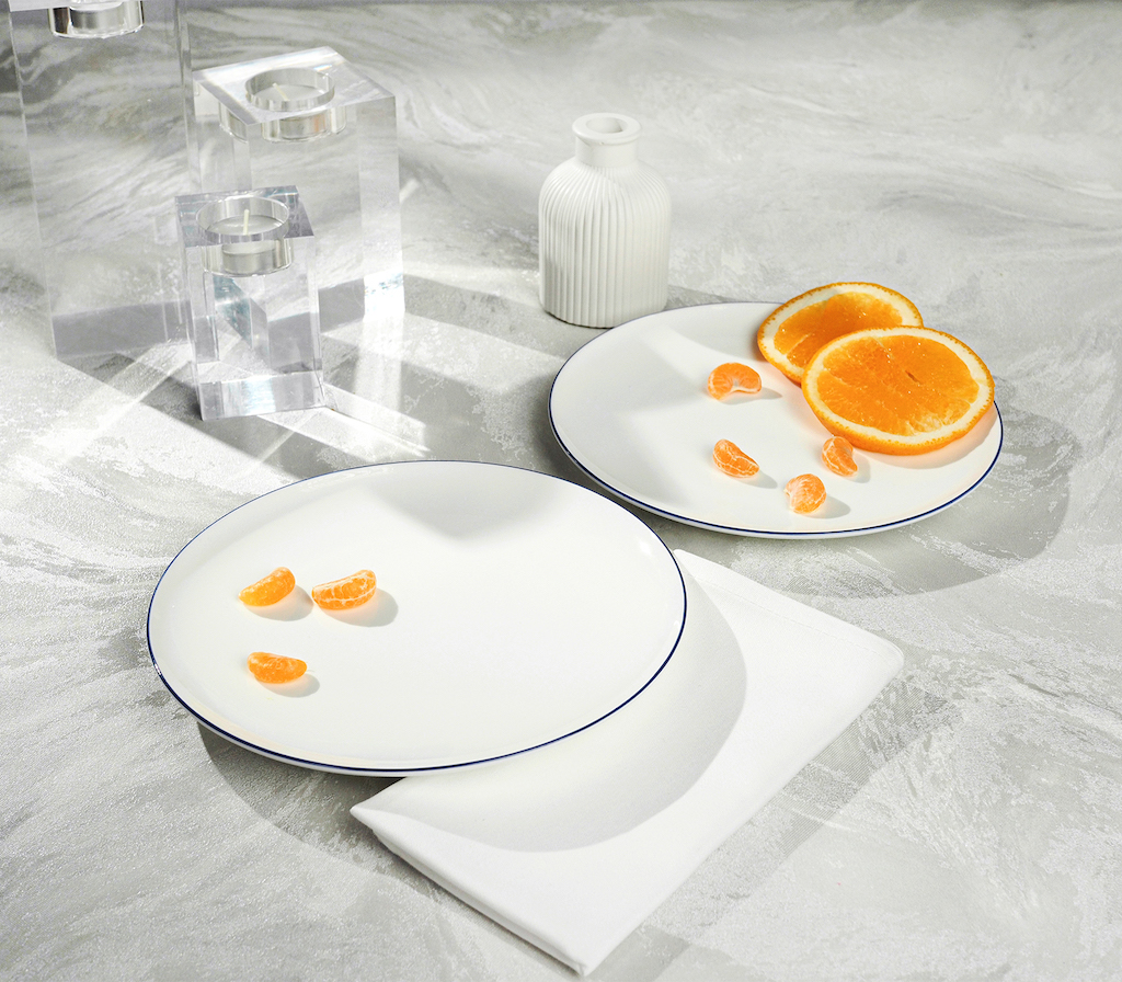 Тарелки Stenova Home закусочные Symbol 20.5см, 2шт. белый, кант синий