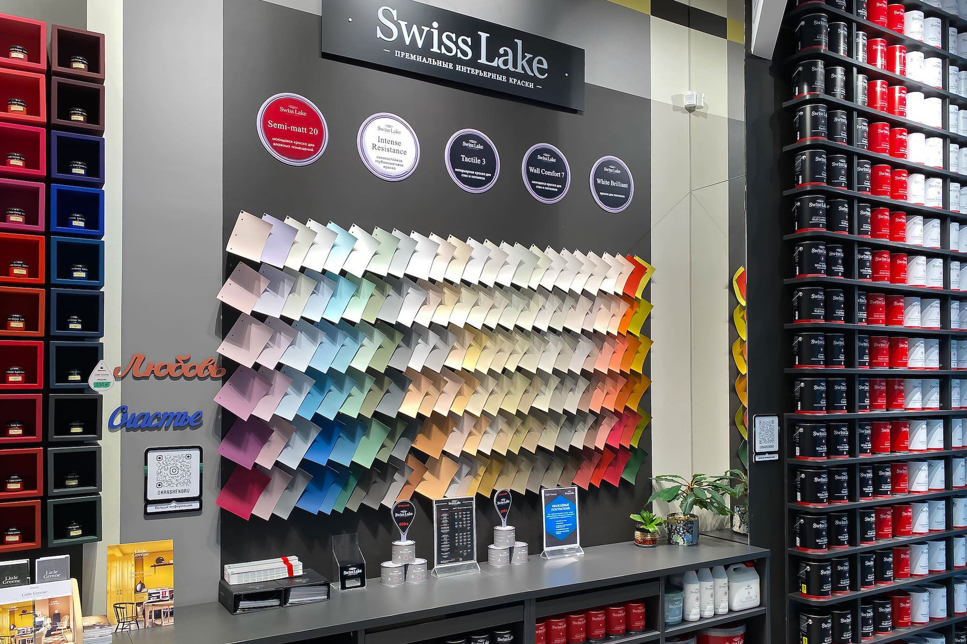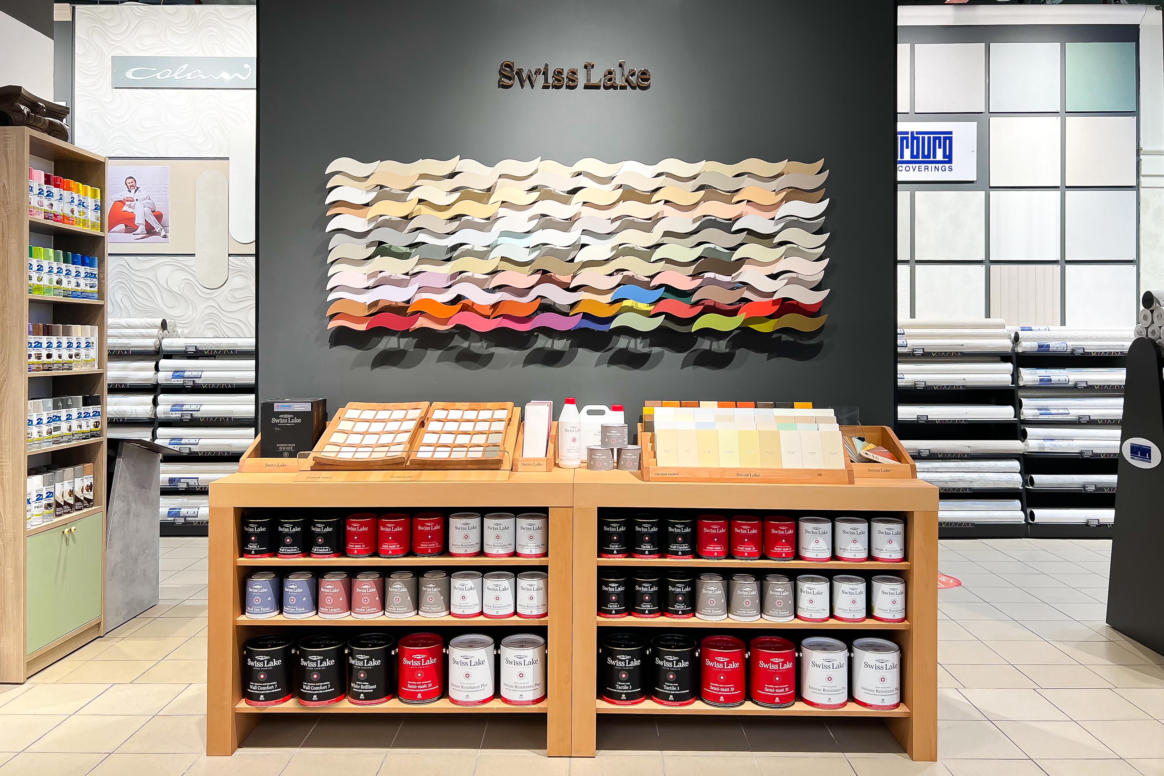 Swiss Lake — премиальная краска нового поколения. На создание рецептуры и поиски подходящего европейского сырья ушло два года. Цветовая палитра разрабатывалась совместно со швейцарской дизайн-студией Éveil. Получилось 3020 оттенков, каждый из которых идеален для стильного дизайнерского ремонта.