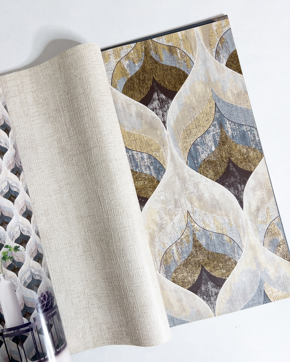 Hakan Akkaya II — коллекция от турецкого бренда DU&KA. Основа каталога — восточные принты, особенно много здесь вариаций на тему орнамента «решетка», есть и более классические, и современные версии. Фактуры штукатурки и эффект потертости на обоях придают коллекции более атмосферный и уютный вид.