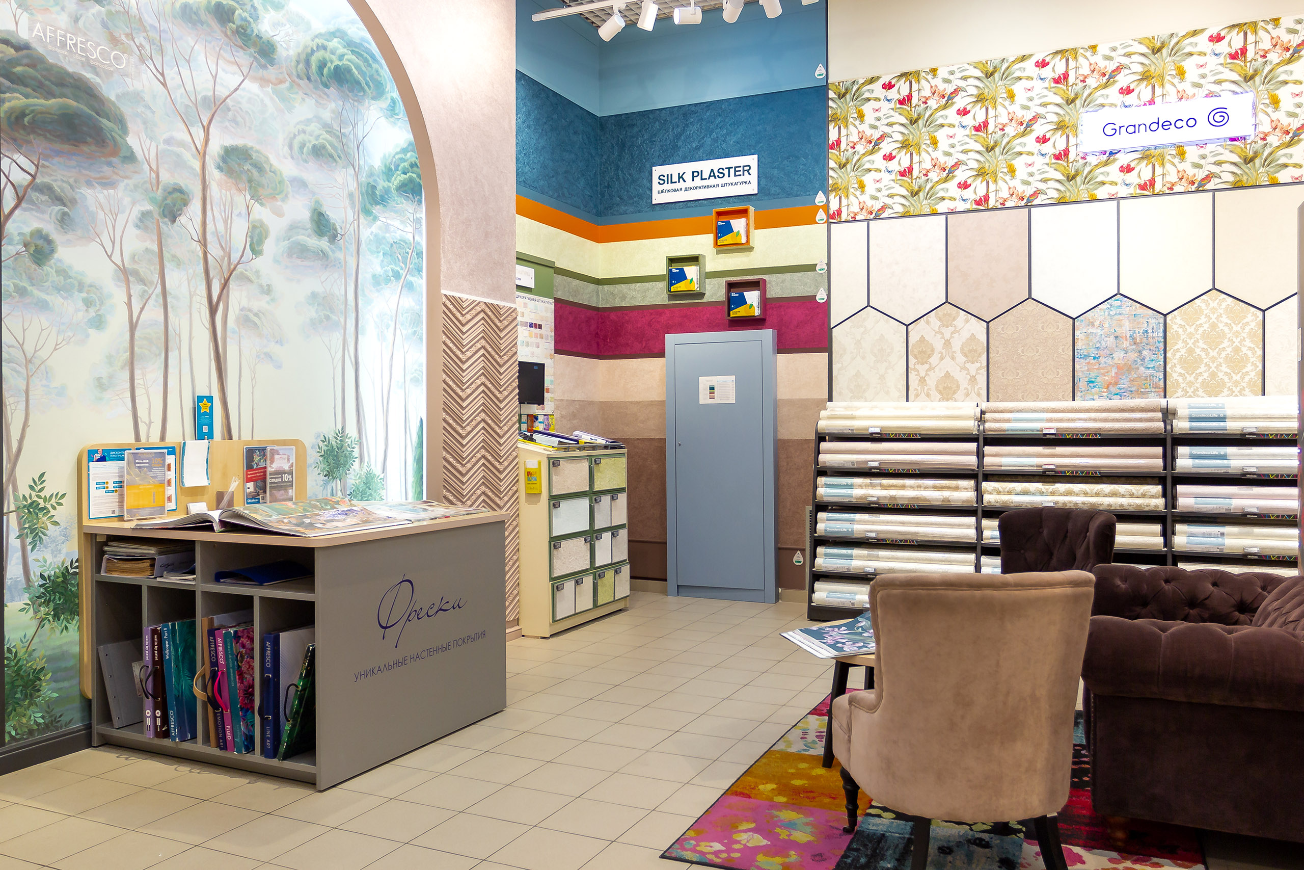 «Обойкин» на Фучика, 2 — это 800 квадратных метров площади и 1500 артикулов обоев в наличии. А ещё: лепнина, краска, большой выбор обоев для детской, доступные и премиальные бренды.