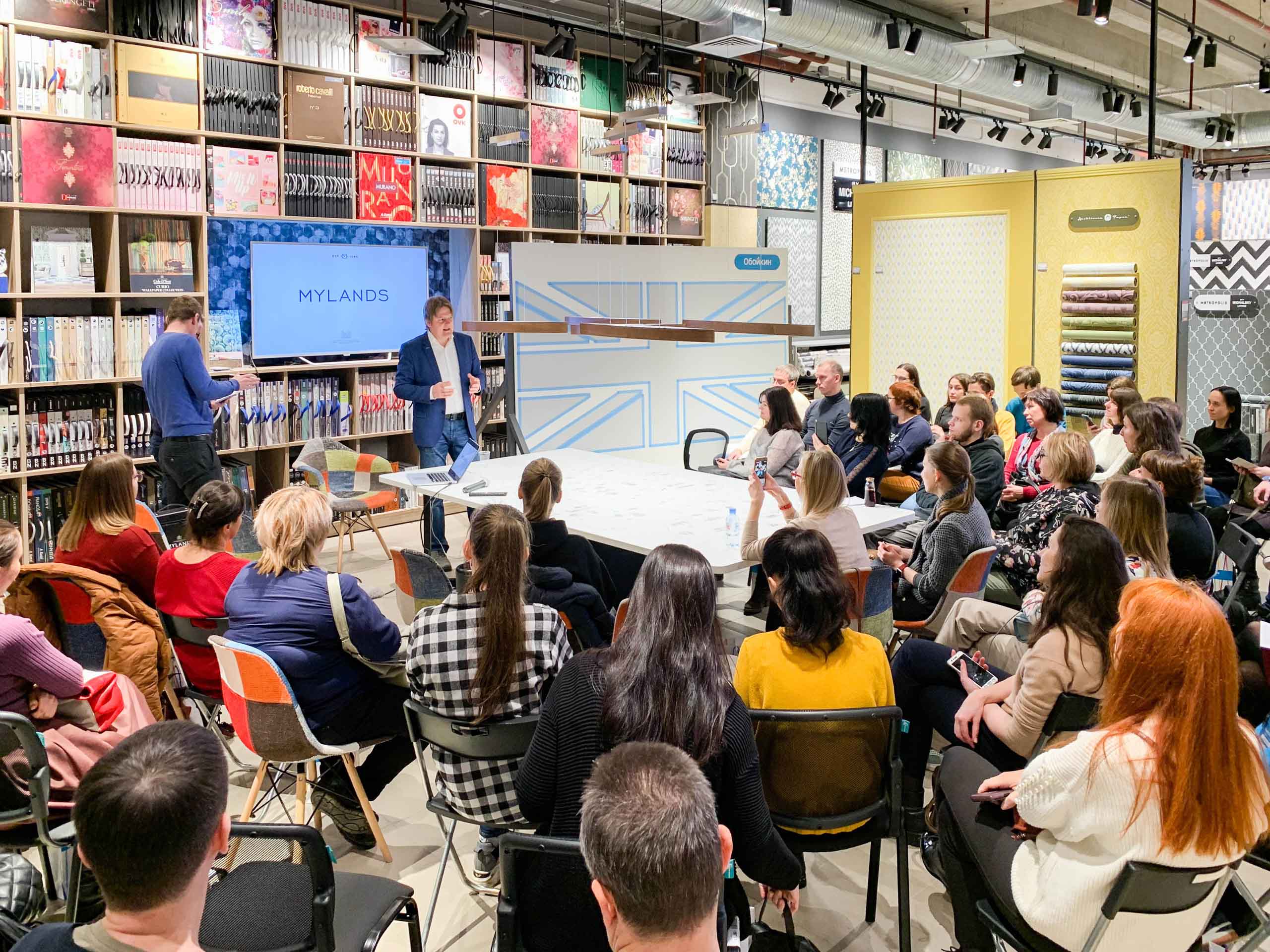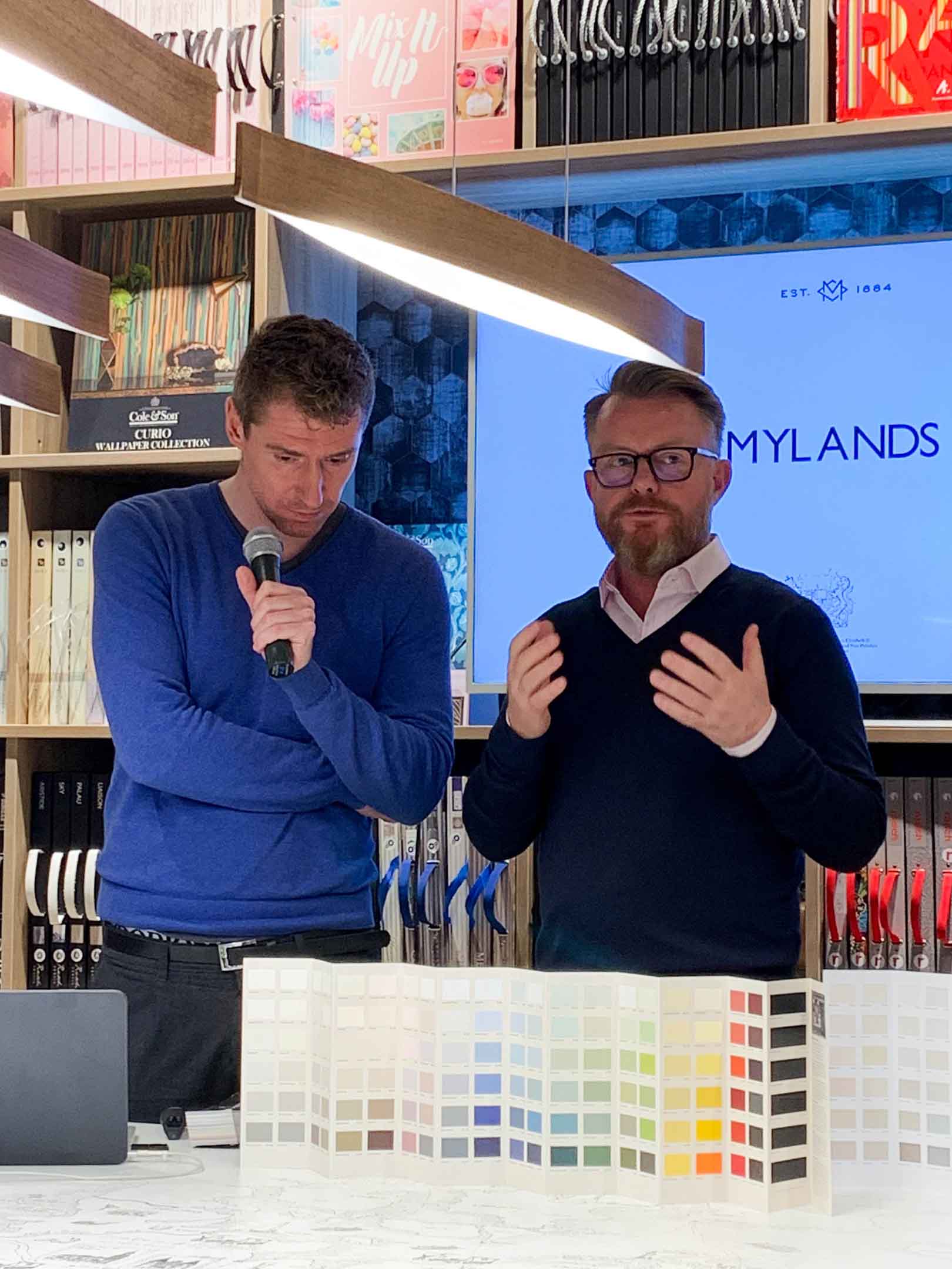 Случилось долгожданное! К нам приехал Доминик Майлэнд, потомок основателя фабрики Mylands. Это старейшее производство красок в Англии, к тому же награжденное Королевским орденом, и обладающее эксклюзивным правом поставок краски ко двору Её Величества.
