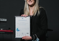 Свой проект Варвара назвала Fiume nero. В основе работы лежит минимализм и белый цвет, дополненные арт-объектами и сложными формами. Мы были рады поздравить Варвару с победой и подарить ей полезные подарки.