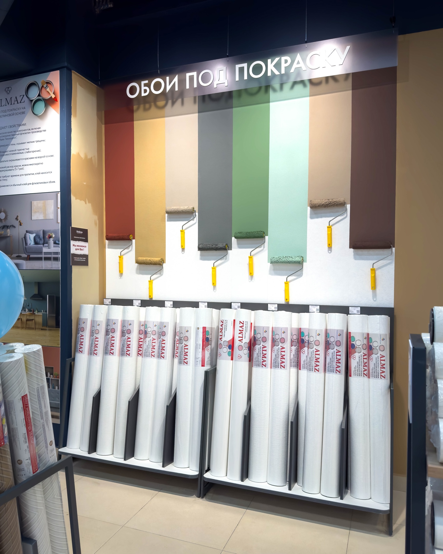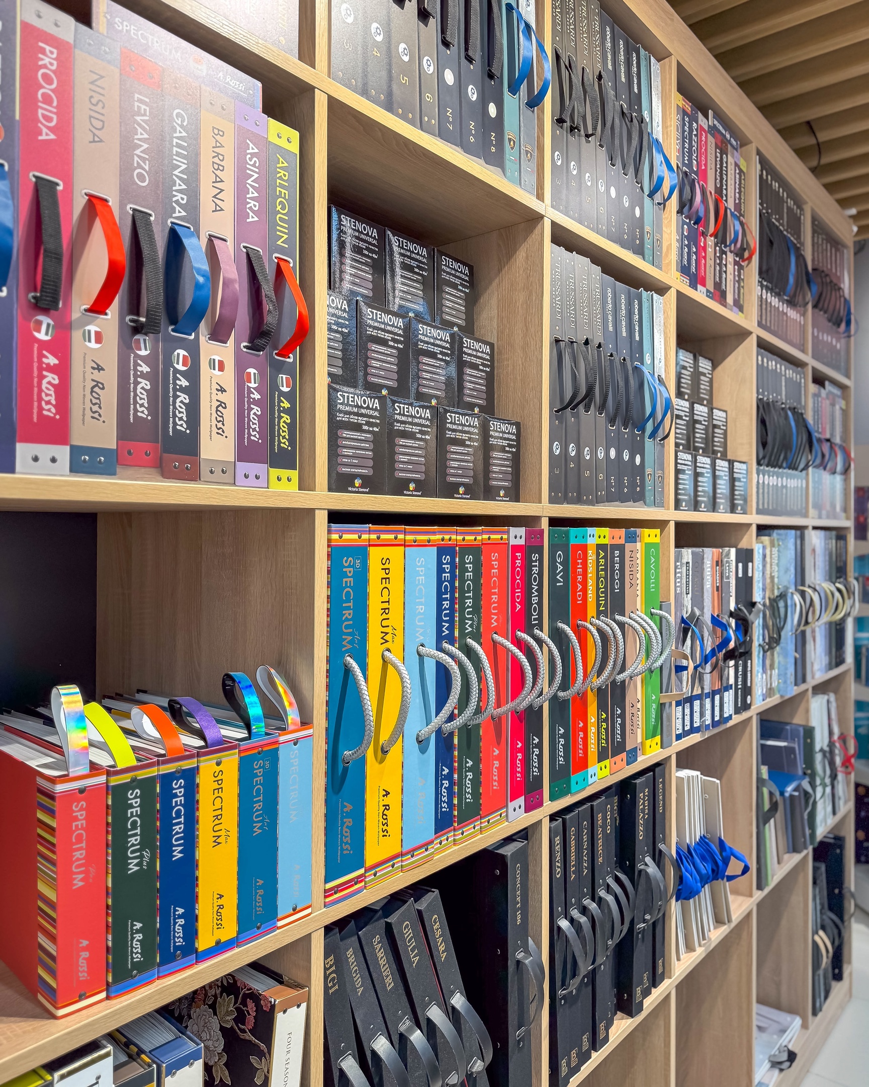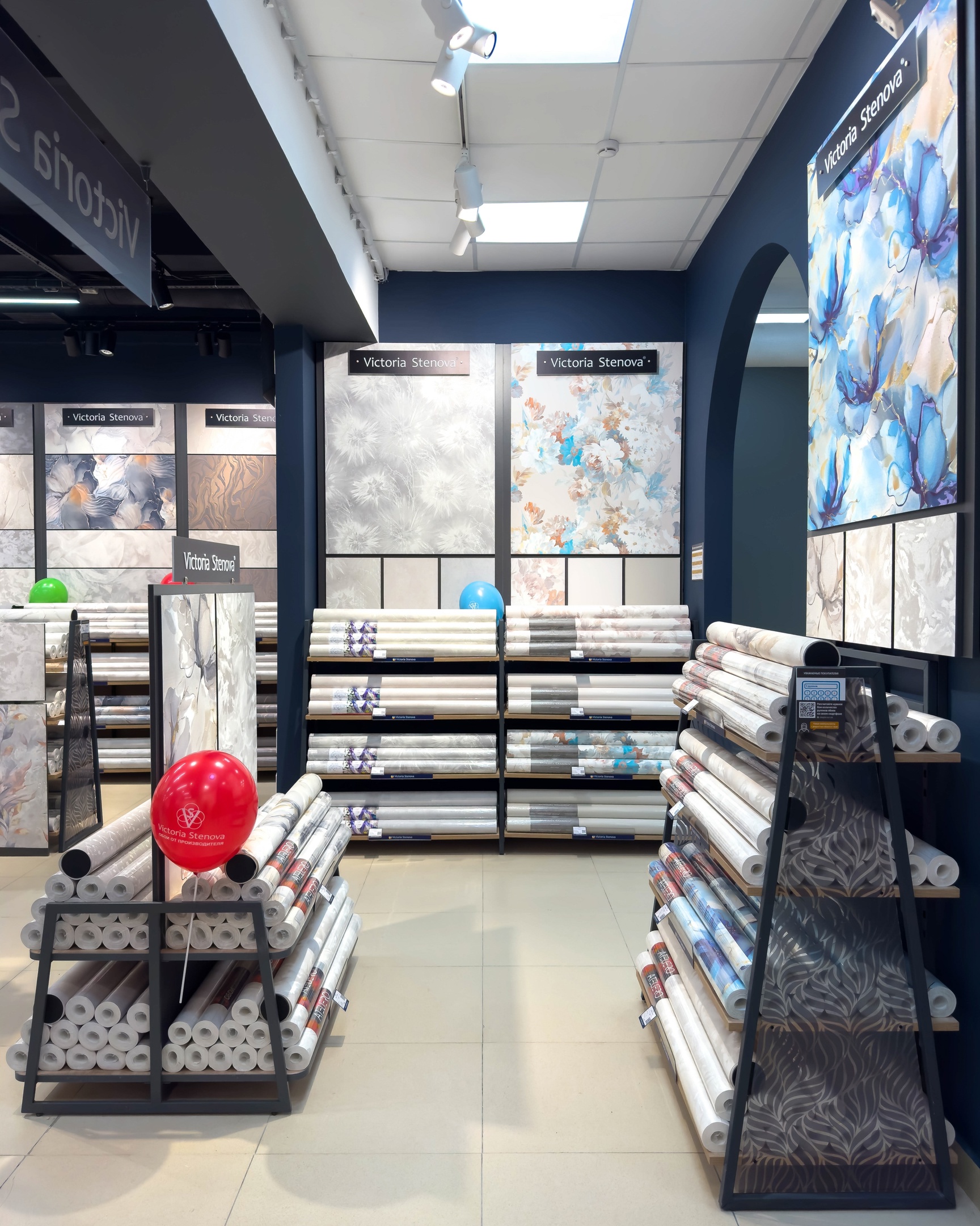 Несмотря на название, в магазине представлены не только обои Victoria Stenova: здесь же можно выбрать напольные покрытия, краску, лепной декор, интерьерные картины, клей и инструмент.