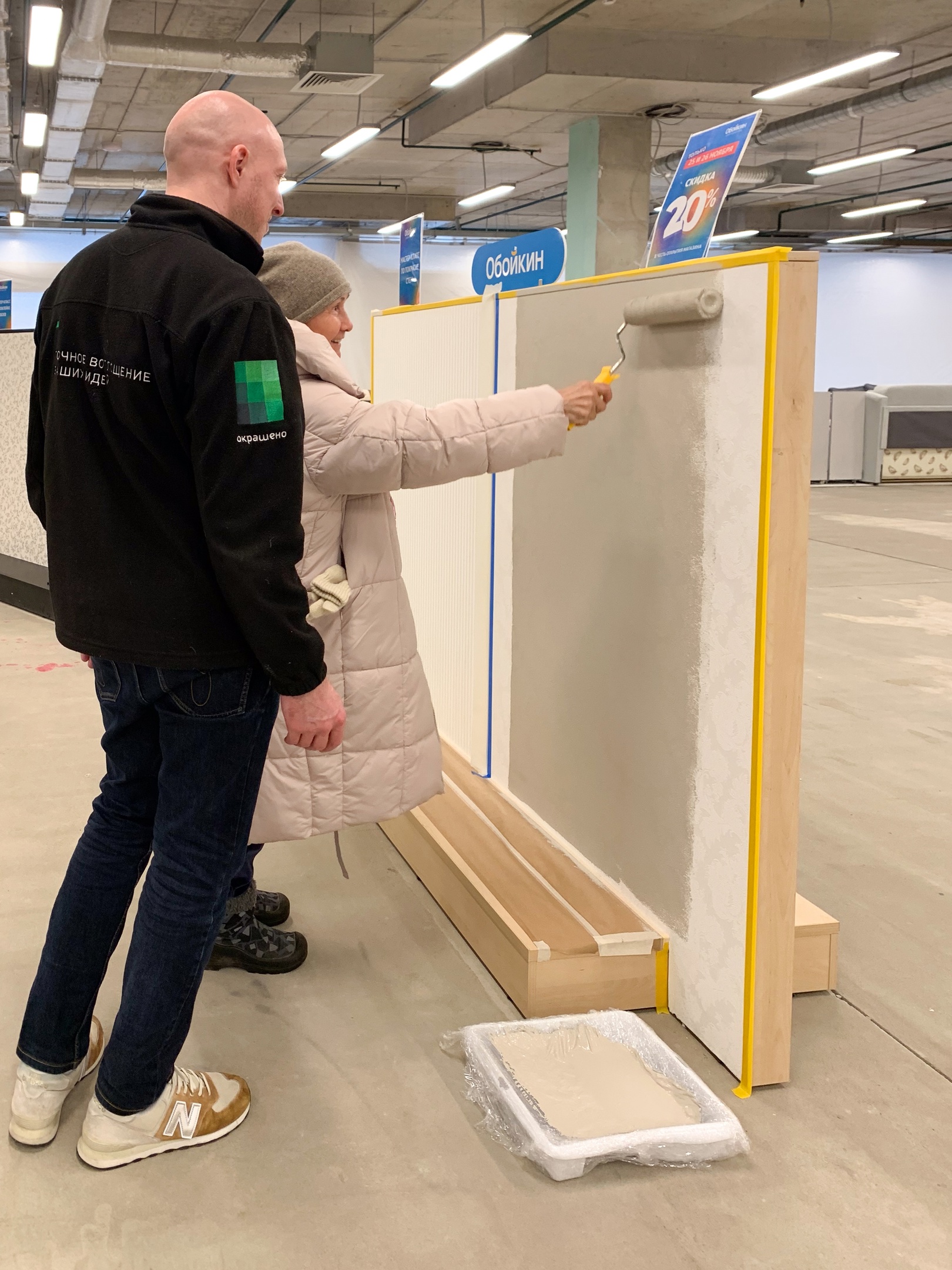 В честь открытия мы провели несколько активностей для наших гостей: Александр, специалист колеровочного центра «Окрашено» учил всех желающих правильной технике покраски, а дизайнер-декоратор Ксения давала консультации по оформлению интерьера.