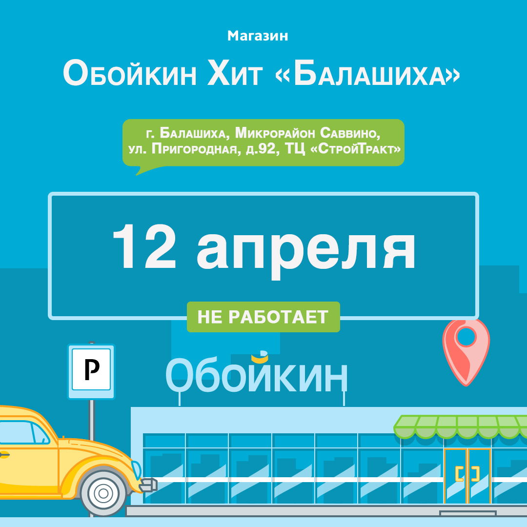 Дорогие покупатели!Обойкин Хит «Балашиха» не работает 12 апреля.