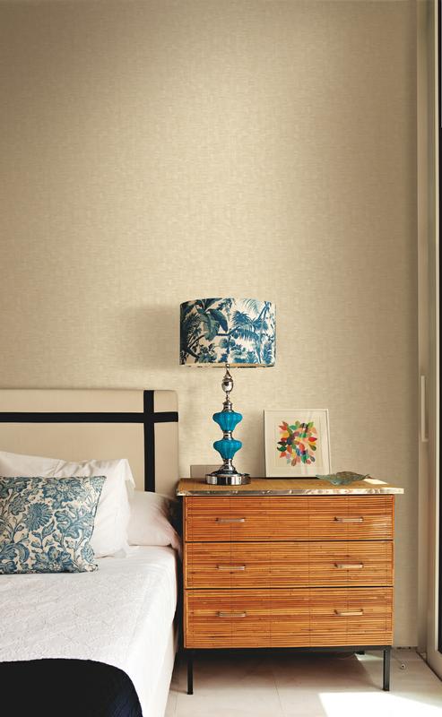 Обои из коллекции легко сочетать друг с другом: выберите только фоновые обои с фактурой грубой ткани или добавьте акцент с рисунком пальмовых листьев. Вам не нужно быть дизайнером, чтобы всё получилось. И не забудьте дополнить интерьер живыми растениями.