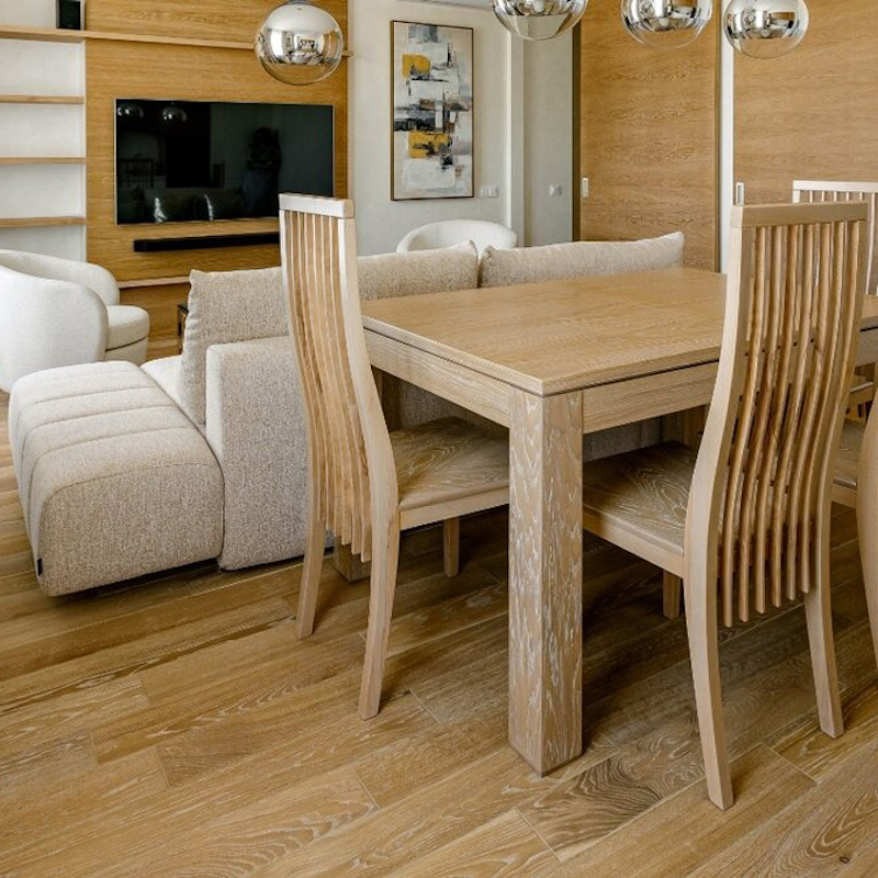 С практической стороны, наилучшими вариантами являются полы, имитирующие натуральное дерево в средних тонах. Они гармонично вписываются в любое пространство и менее подвержены видимому загрязнению, что делает их удобным выбором.